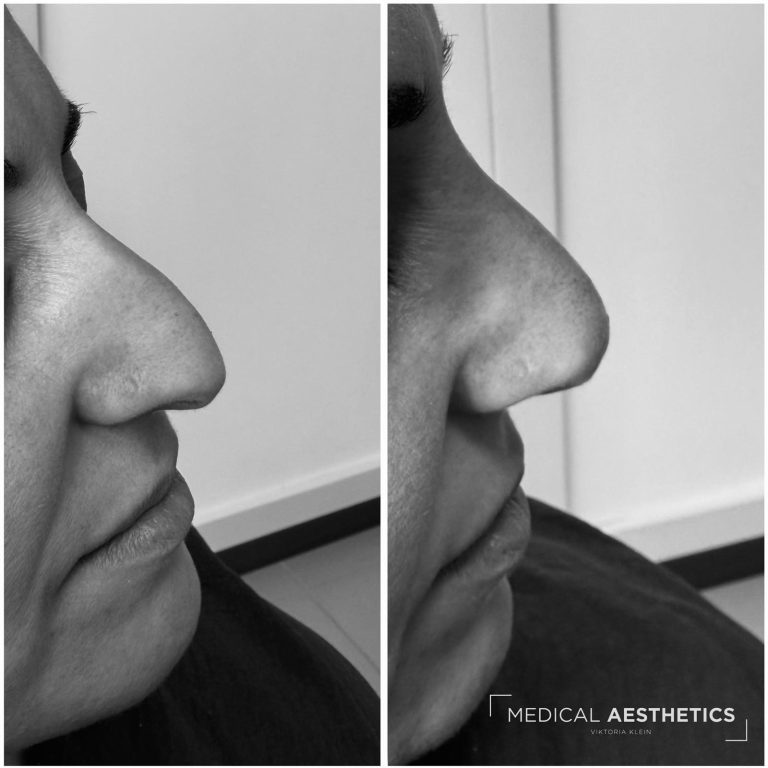 Durch kleinere Korrekturen lässt sich die Nase oftmals auch mit Hyaluron in die gewünschte Form bringen.